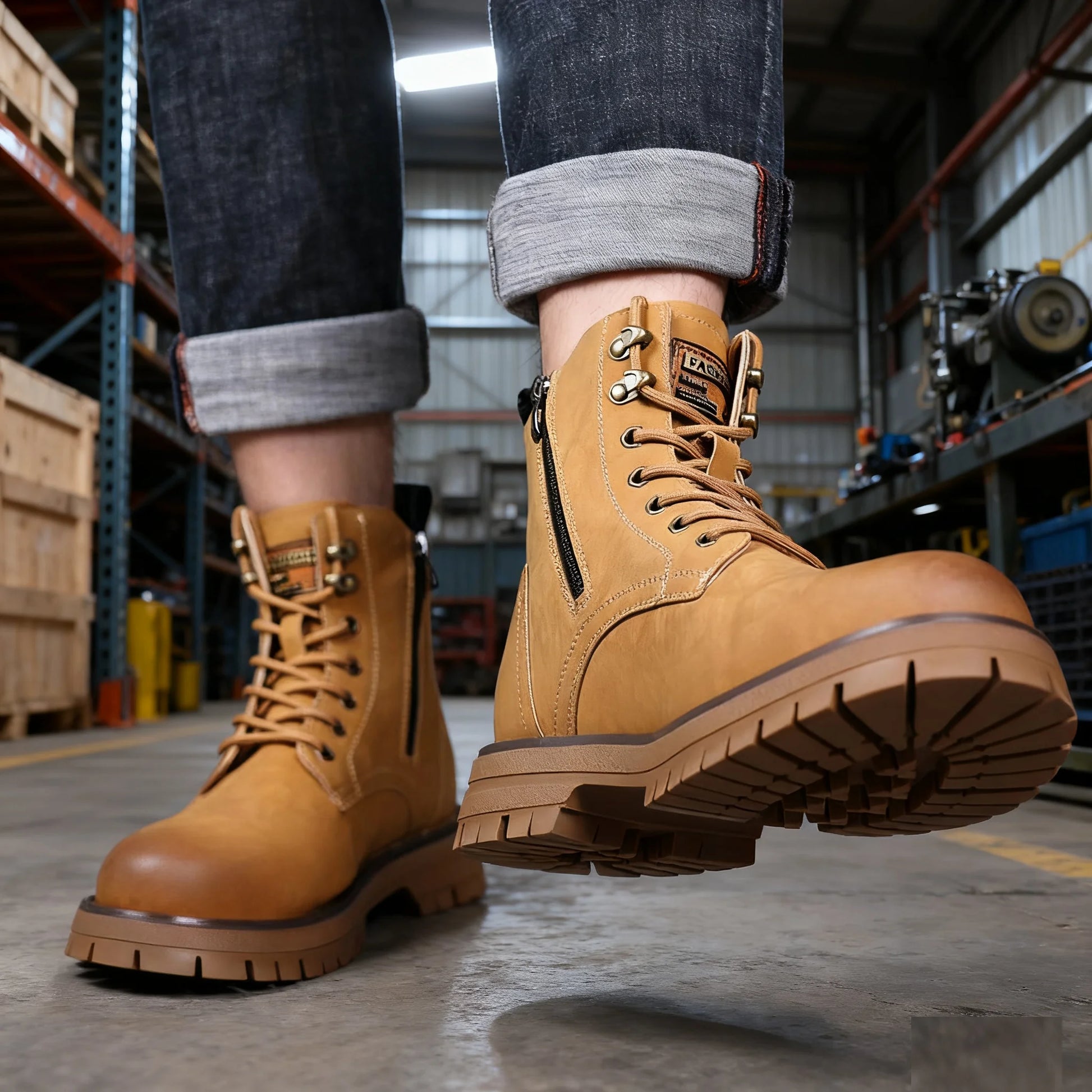 Crafted from genuine split leather, the Ravenridge Boots combine classic British-inspired design with modern outdoor functionality. Featuring a lace-up front and side zipper, these high-top boots deliver the perfect balance of durability, comfort, and elevated everyday style.