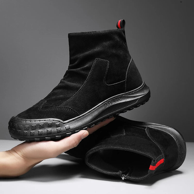 Crafted from premium flannel suede, the Stravon Boots combine rugged streetwear character with modern minimalist comfort. Designed for autumn and spring, these high-cut boots feature a pleated upper that delivers a relaxed yet structured look - perfect for city wear, travel, or casual outdoor days.