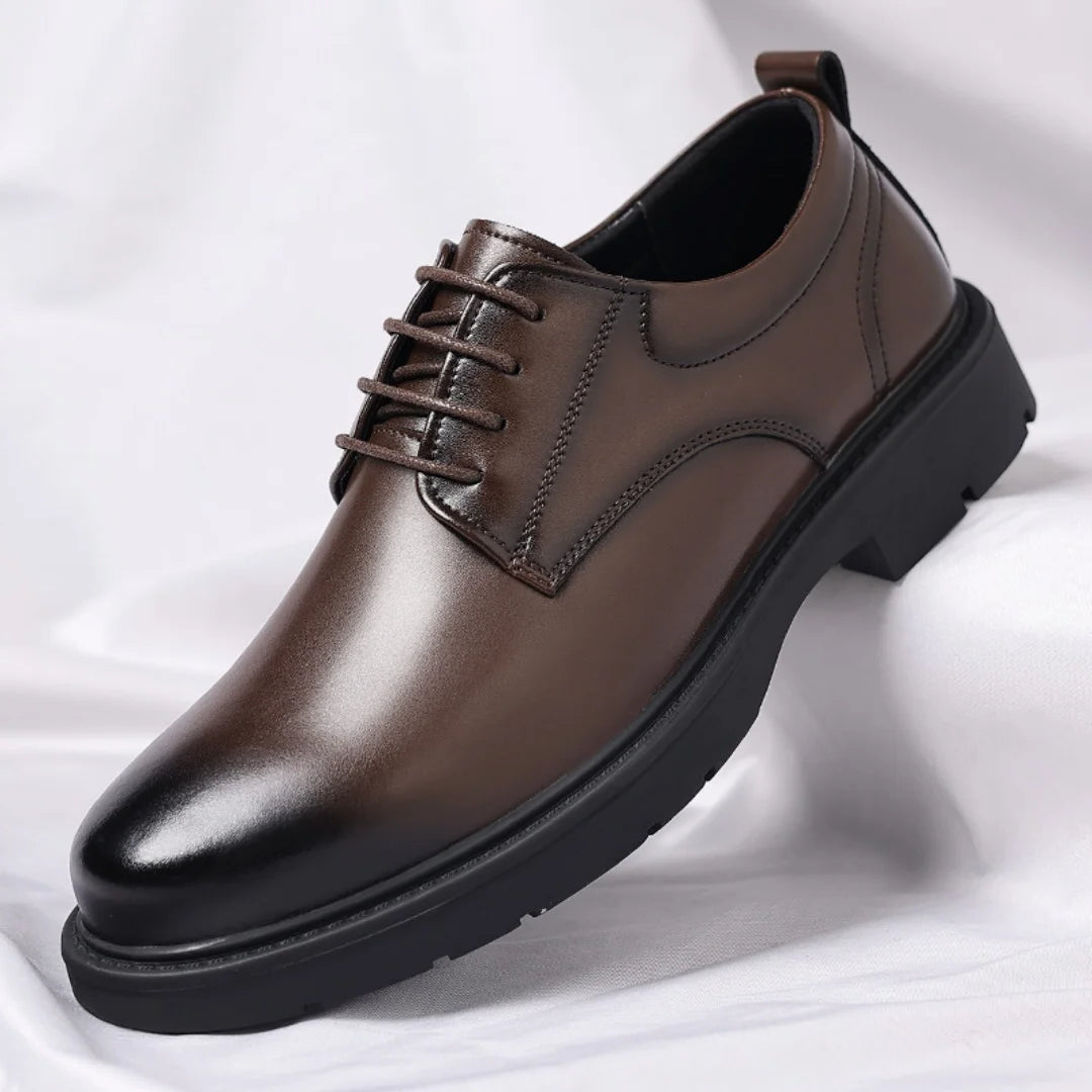 The smooth, polished upper provides a sleek, professional appearance, while the soft PU lining and cushioned insole ensure comfort throughout long days or evening gatherings. A durable non-slip rubber sole enhances traction and stability, making the Valcourt Shoes perfect for both formal and everyday wear.